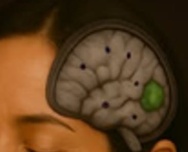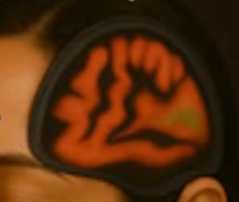 This is even more baffling. Let’s ignore that it's red for no discernible reason, the image used suggests the ventricles, the internal spaces of their brain, are much larger than the average person's, which is usually suggests advanced dementia. You’d think this would affect readings of brain activity, wouldn’t you.