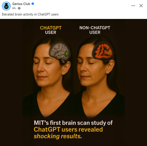 A recent post by the Facebook content aggregator 'Genius Club' made many bold claims about the effect ChatGPT has on our brains. It may be the wrongest thing ever presented online.