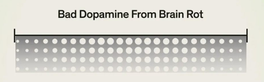 And even that’s being generous. The invoking of brain rot suggests that he dopamine you’re left with is toxic and unpleasant in some way. Like agricultural runoff. Or that vile liquid that gathers in the salad drawer of your fridge when you’ve unknowingly left a lettuce in there for 11 months. It’s still vegetable matter, but it’s bad vegetable matter.