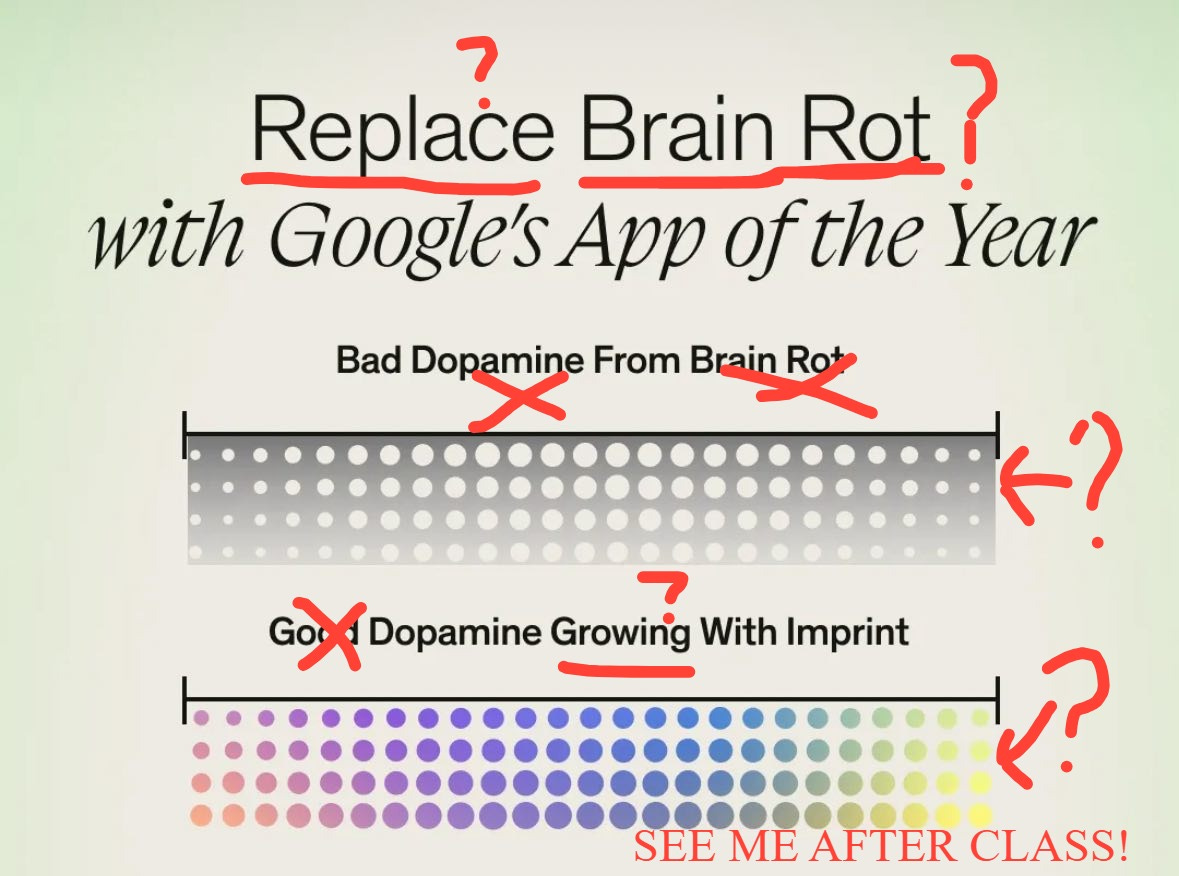 There is one thing about the ad that’s right. It seems that Imprint was indeed Google’s app of the year, 2023.